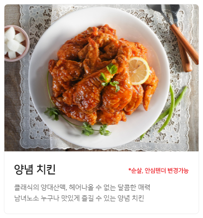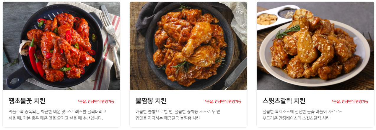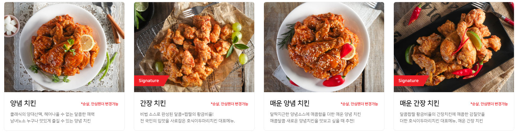 총 11종의 치킨메뉴로 구성되어 있습니다.