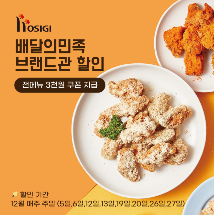12월 매주 주말 배달의 민족 브랜드관 할인