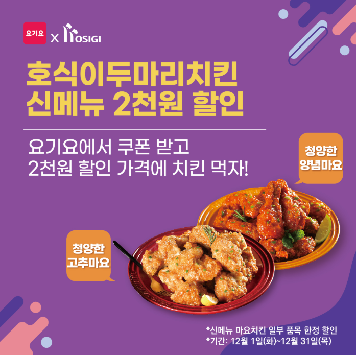 요기요 호식이두마리치킨 신메뉴 2천원 할인
