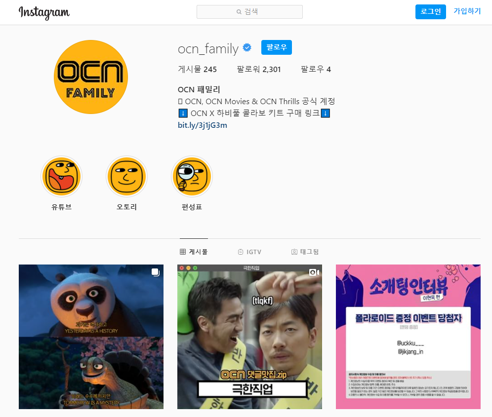 [인스타그램] www.instagram.com/ocn_family/