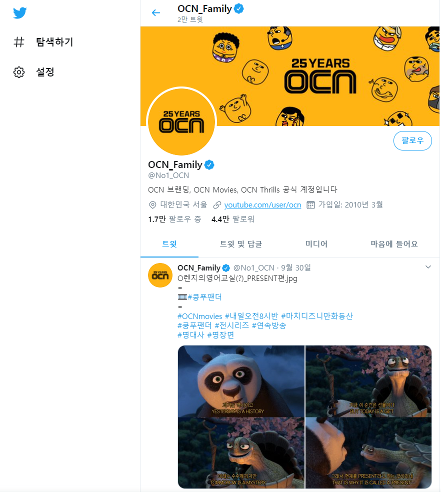 | 오씨엔 스릴스 편성표 확인 하기│오씨엔 무비스│OCN THRILLS (0) | 2020.10.04 |