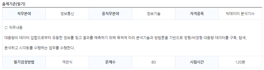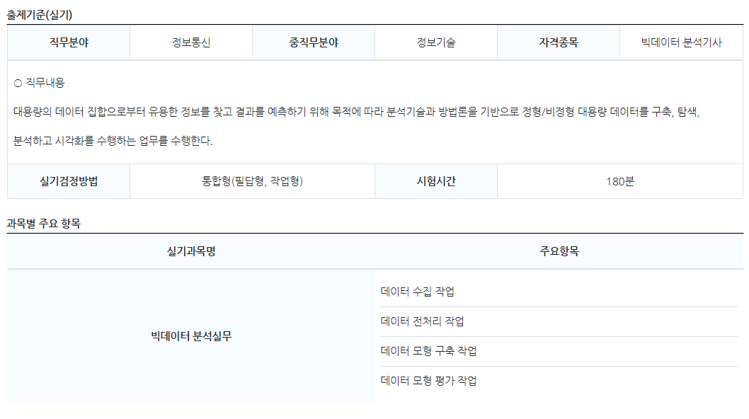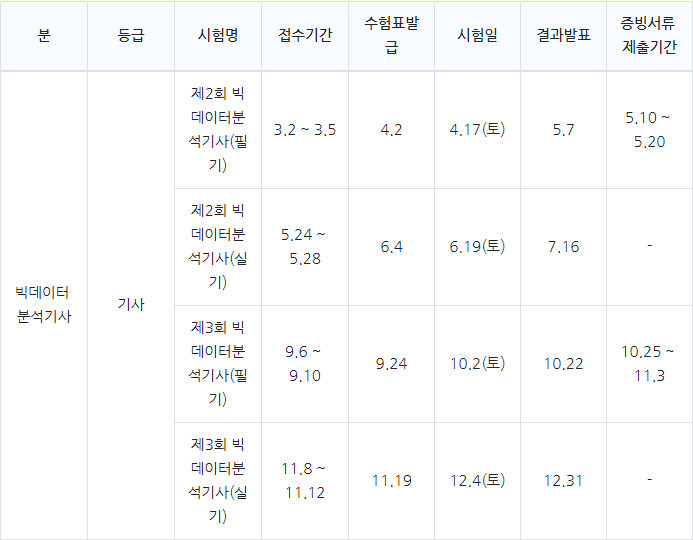 대한민국의 기사급 자격증이며, 2019년 문재인 정부에서 처음 창설하였습니다. 빅데이터 분석기사 자격검정은 빅데이터 분야에서 처음 시행되는 국가기술자격입니다.