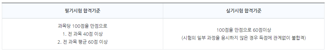 (시험의 일부 과정을 응시하지 않은 경우 득점에 관계없이 불합격)
