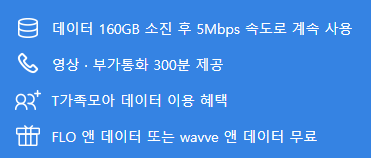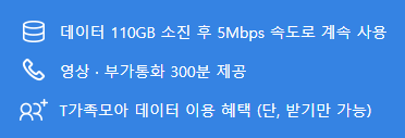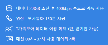 ✔ T가족모아/공유 데이터/테더링 데이터는 기본제공 데이터 내 사용 가능 (사용 시 기본제공 데이터소진)