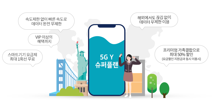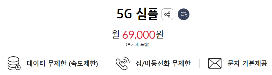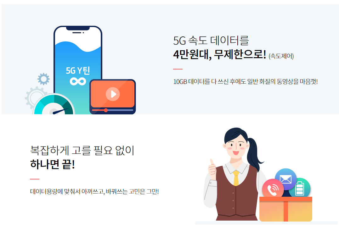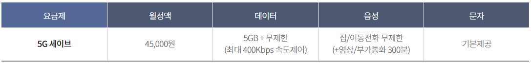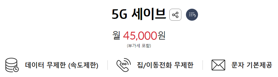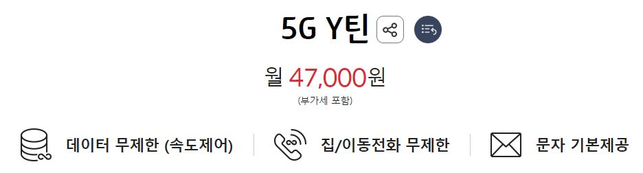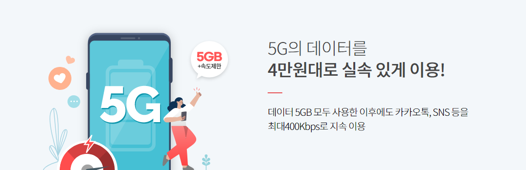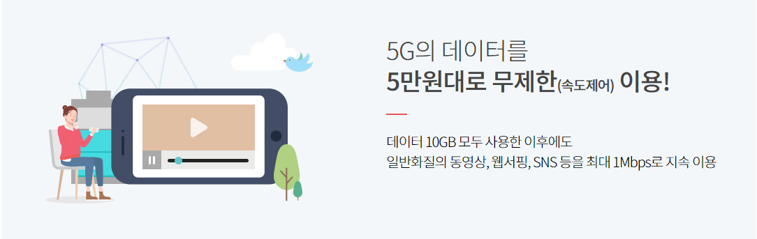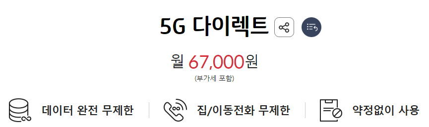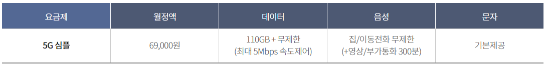 약정 없이 5G 데이터 완전무제한 혜택까지 누리는 요금제입니다.
