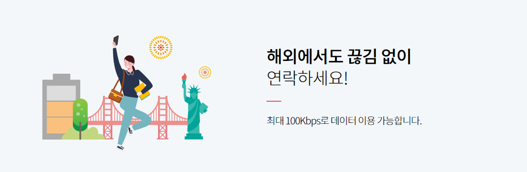 해외에서도 끊김없는 데이터 사용이 가능합니다.