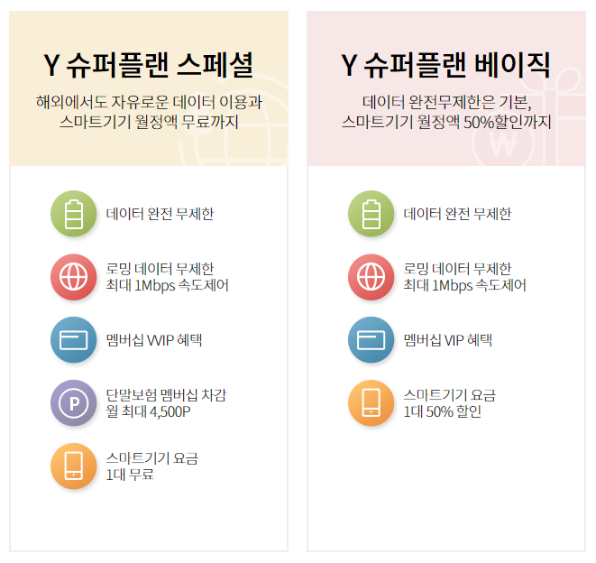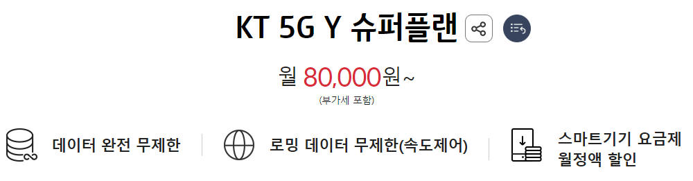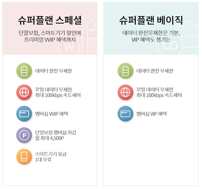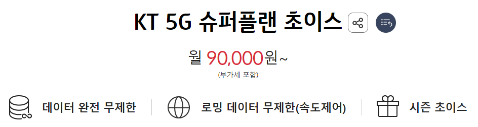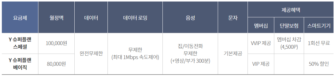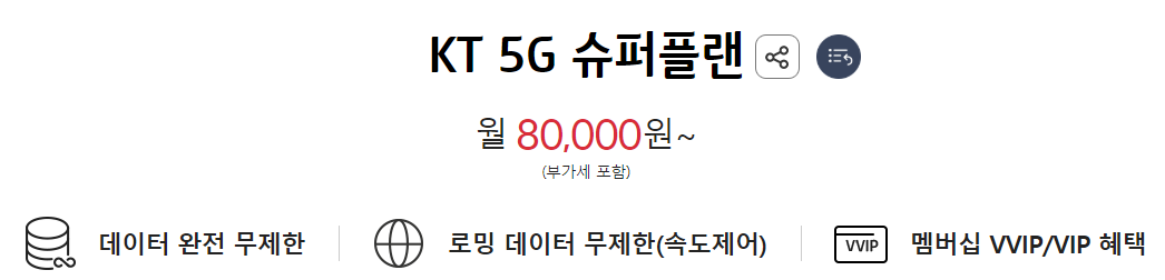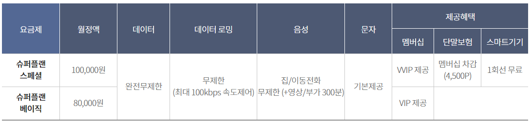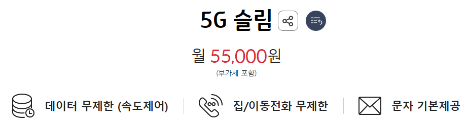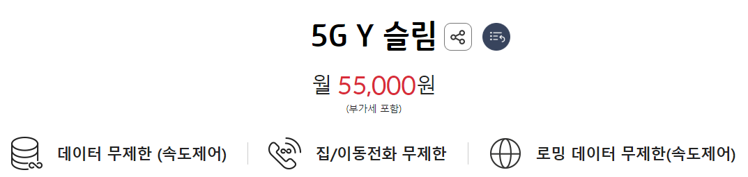 요금제 금액은 부가세가 포함된 실제 지불금액이니 참고하시기 바랍니다.