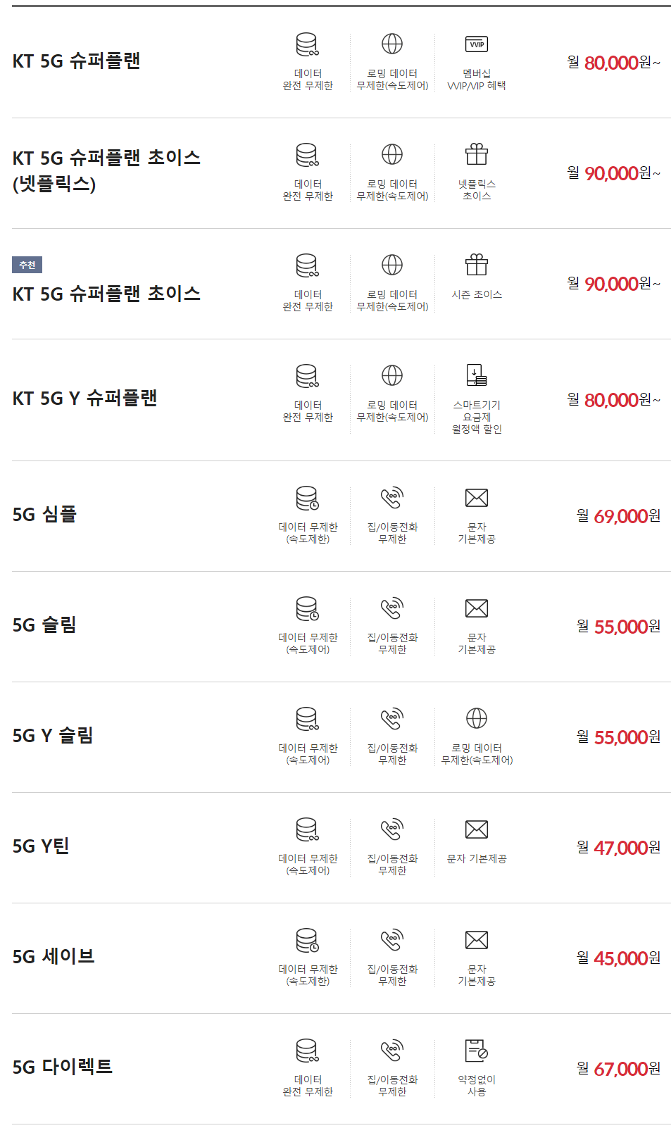통신사 중 KT 5G 요금제에 대해 알아보는 시간을 갖도록 하겠습니다.