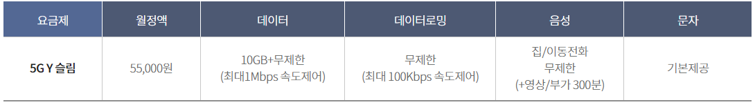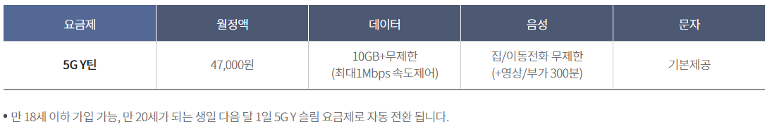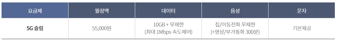 5G 슬림에 혜택을 더한 만 29세 이하 고객 전용 요금제입니다.