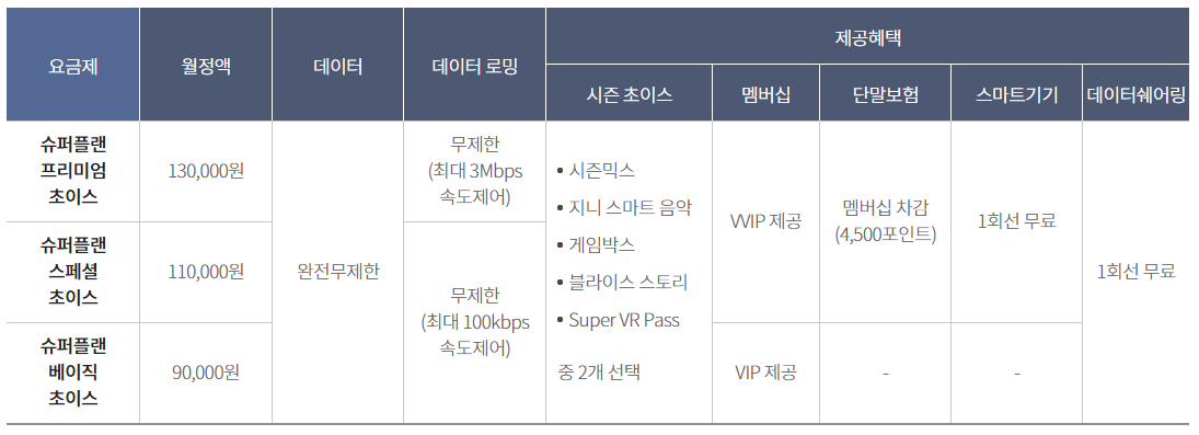 콘텐츠 무제한 시청 혜택까지 누릴 수 있는 요금제입니다.