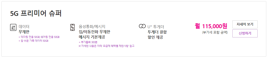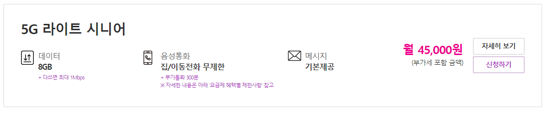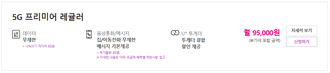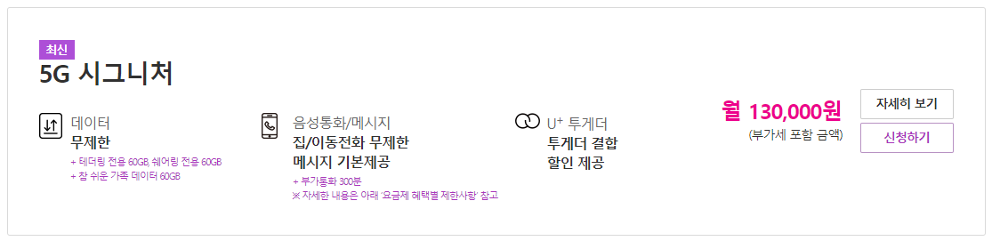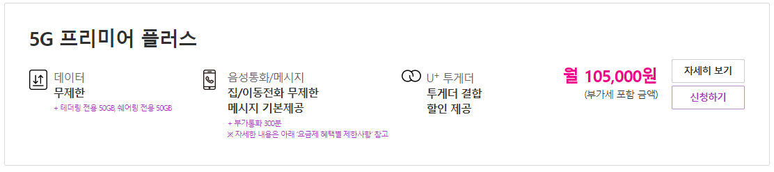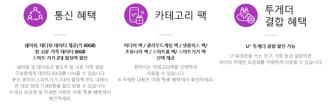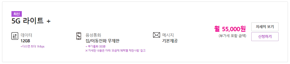 구성과 혜택 또한 요금제에 따라 다르기 때문에