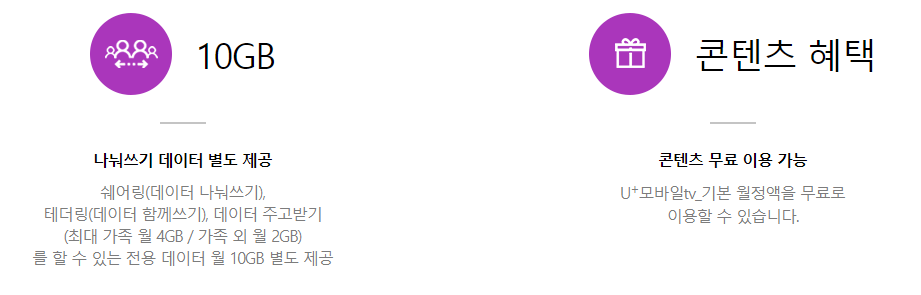 휴대폰 요금제의 데이터 제공량을 나눠 쓸 수 있는 요금제