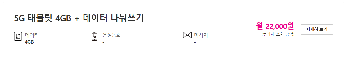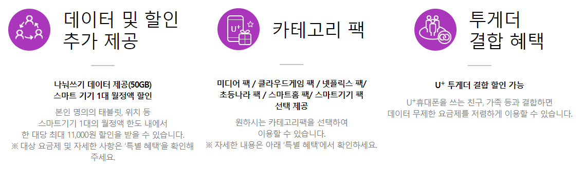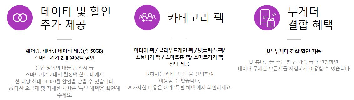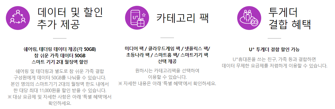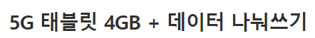 + 테더링 전용 50GB, 쉐어링 전용 50GB