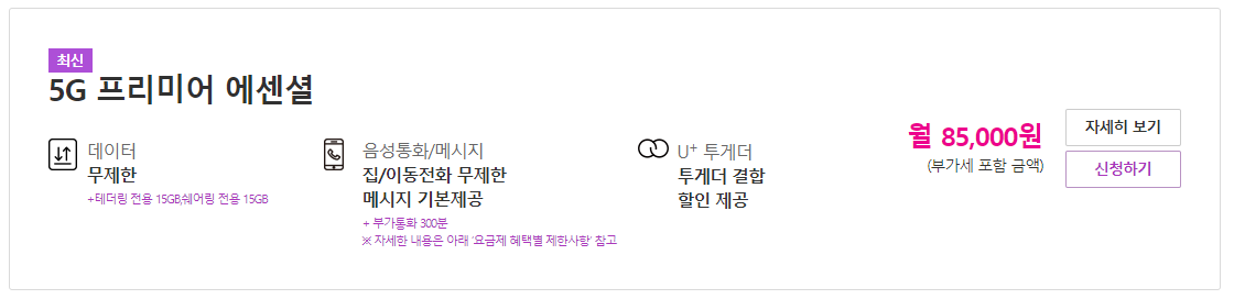 오직 U+ shop 에서 가입 가능한 속도 제한없는 5G데이터 무제한 요금제