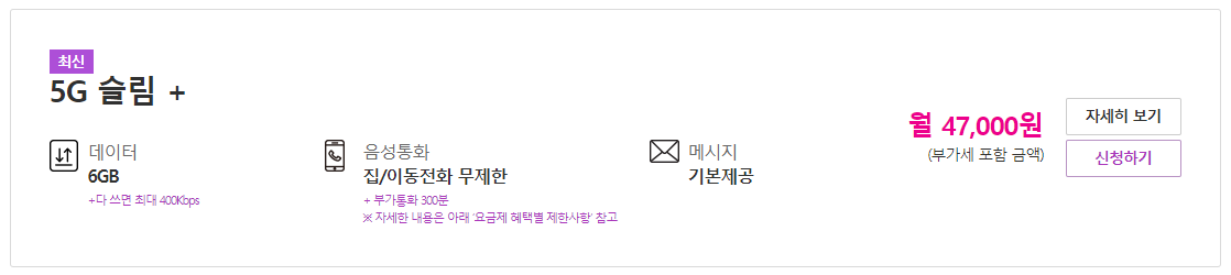 저렴한 요금으로 U+5G 서비스를 이용할 수 있는 5G 실속 요금제