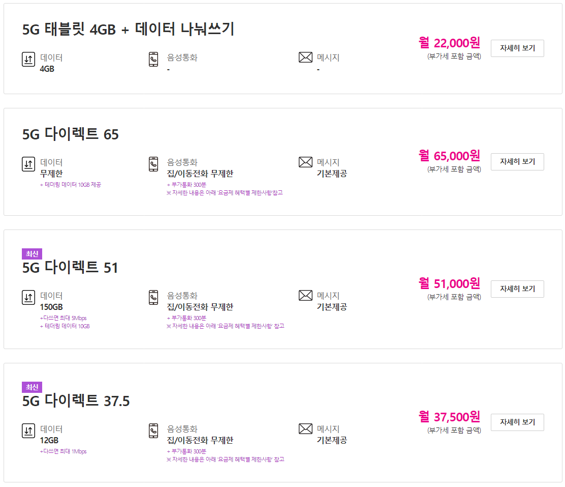 통신사 및 요금제별 장단점을 잘 따져보고 선택하시기를 추천드립니다.