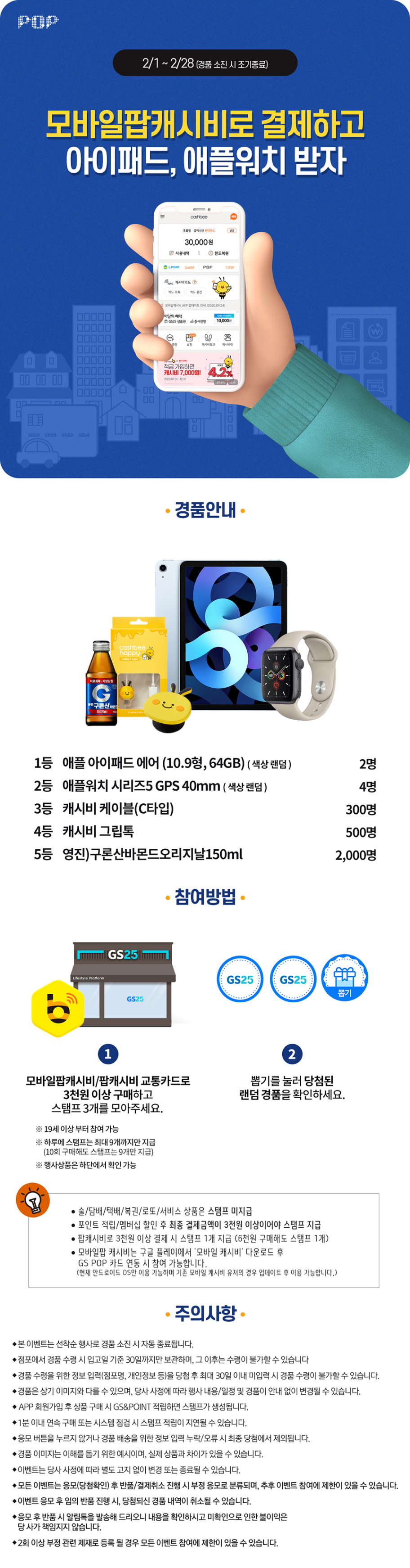 모바일팝캐시비로 결제하고 아이패드, 애플워치 받자!