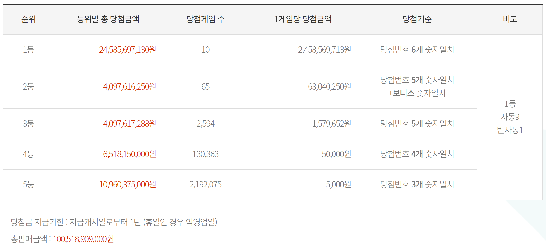 - 지급기한일 초과 시 당첨자가 미수령한 당첨금액은 복권기금으로 귀속됩니다.