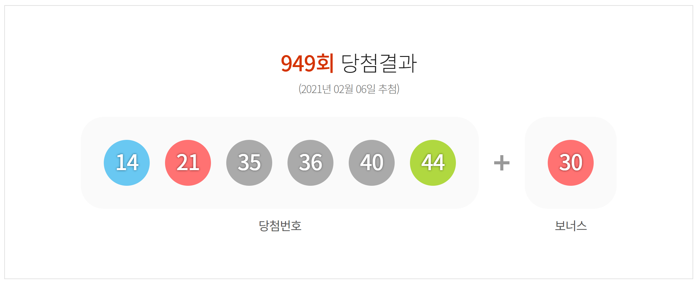 '14, 21, 35, 36, 40, 44'가 1등 당첨번호로 결정됐습니다.