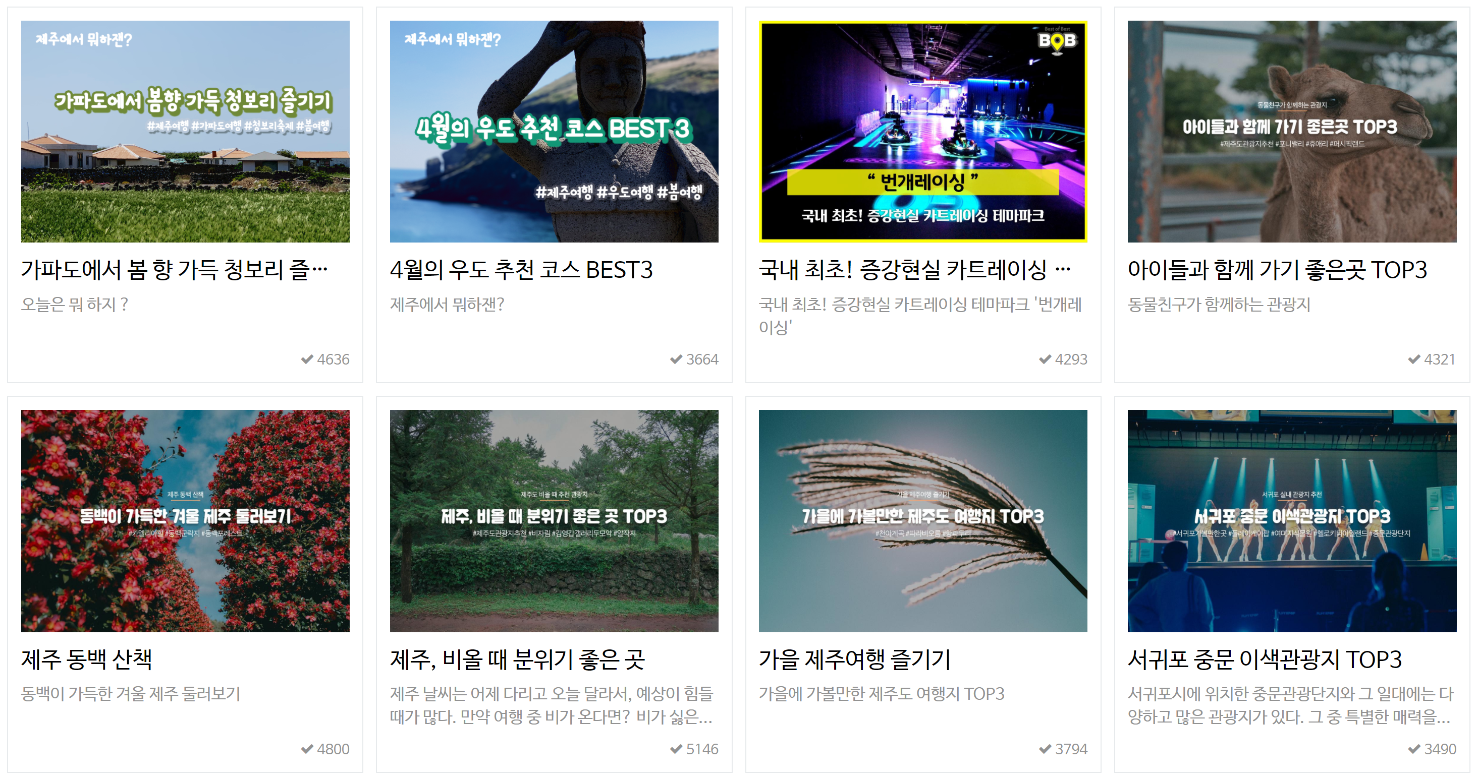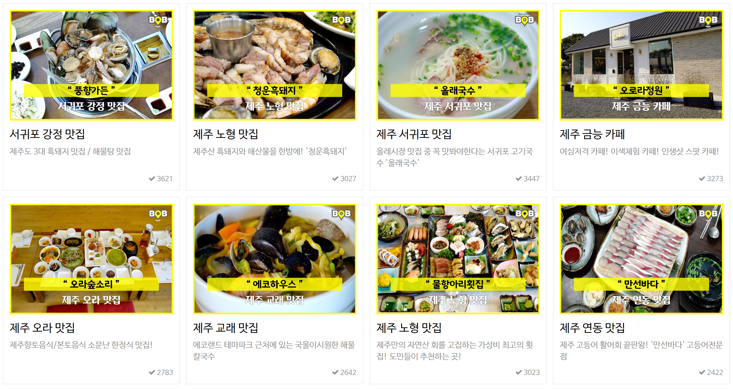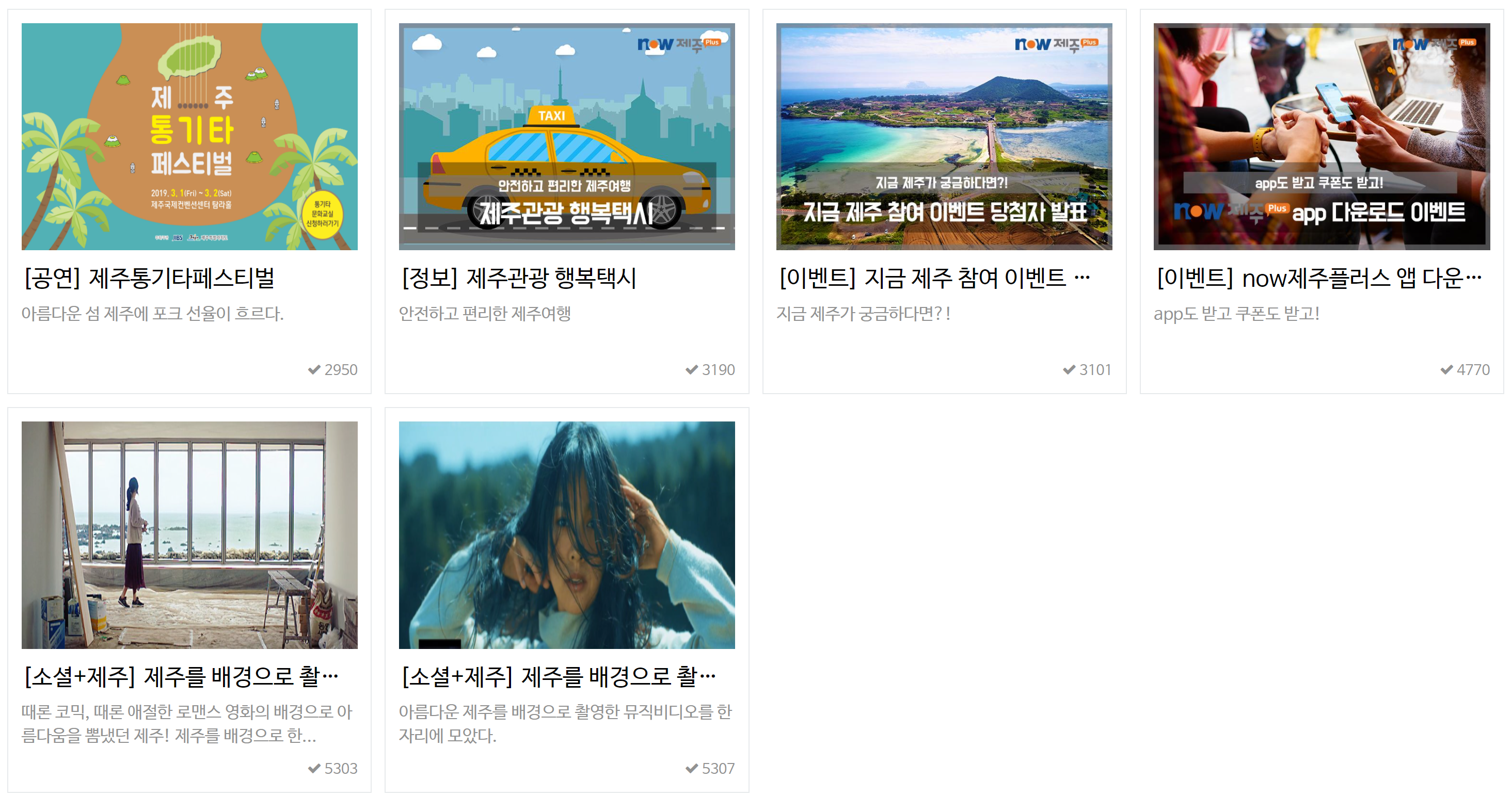 제주도의 주요 먹거리, 관광지, 숙소, 문화/이벤트에 대한 정보도 제공해주는 사이트입니다.