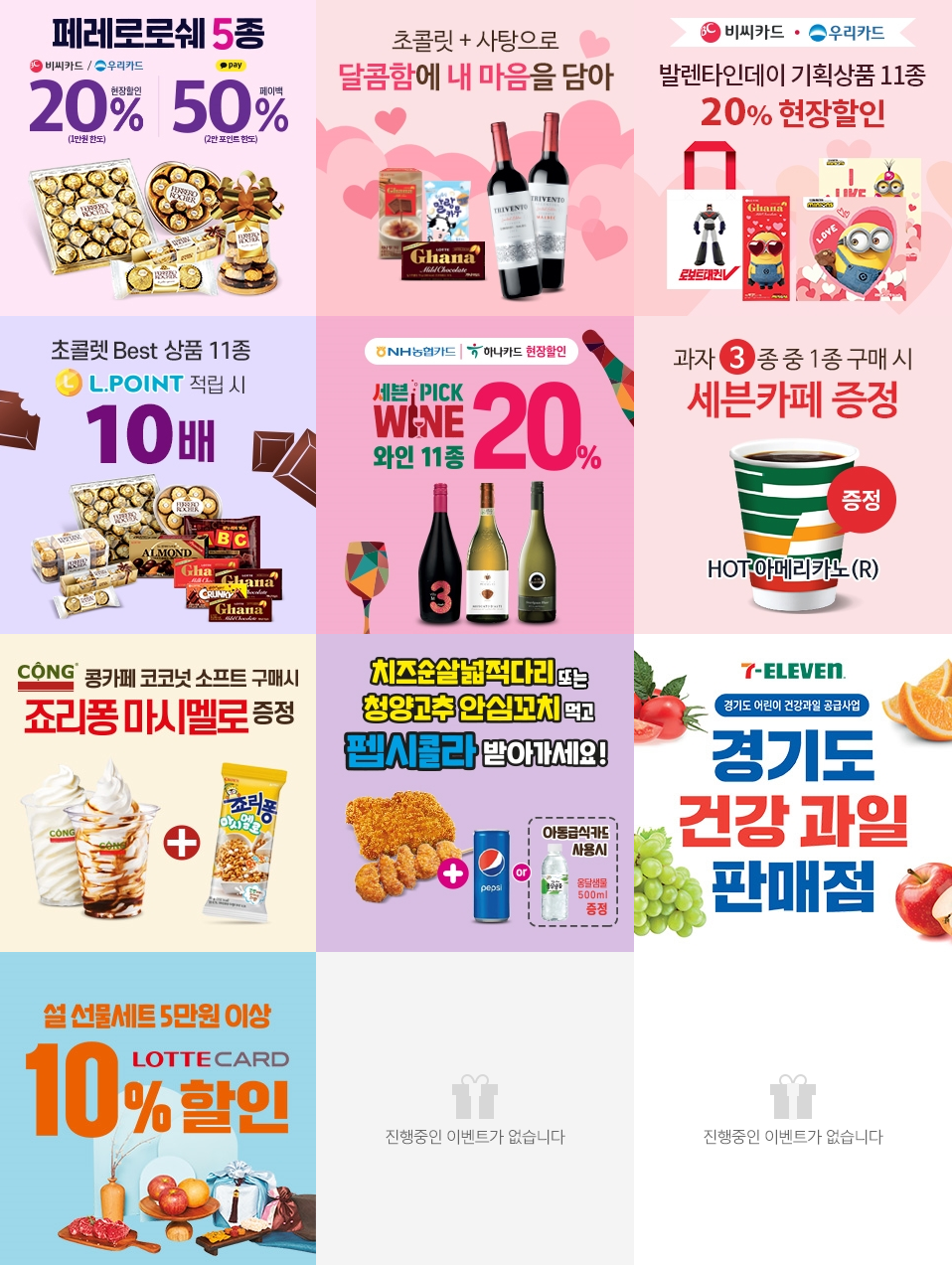 비씨카드 우리카드 발렌타이데이 기획상품 11종 20% 현장할인