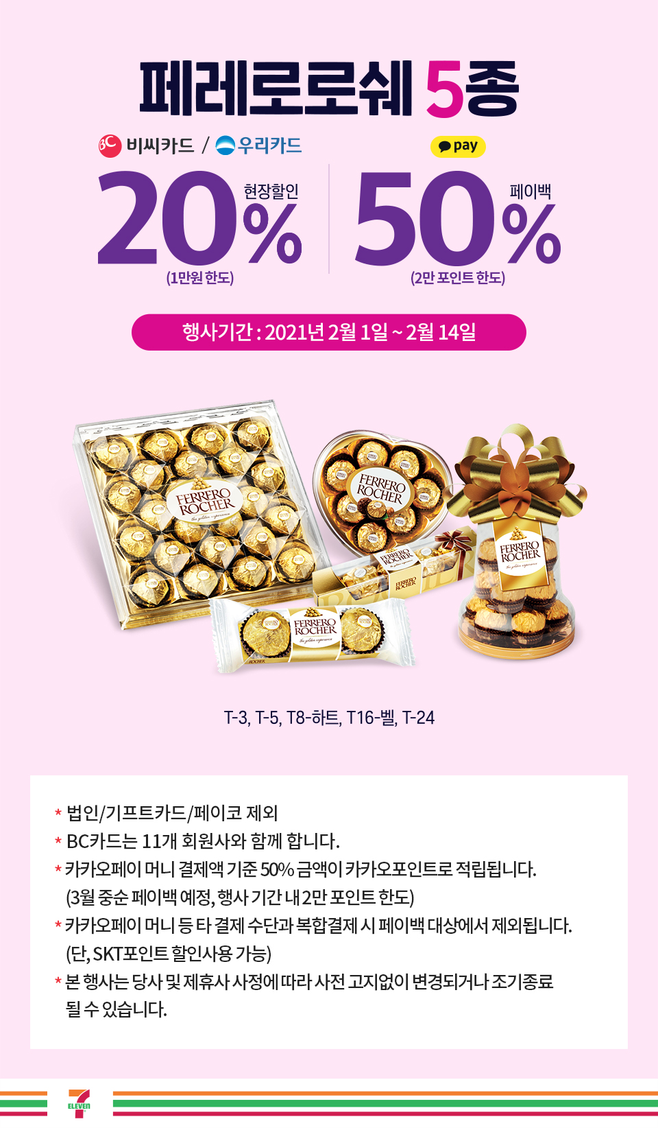 페레로로쉐 5종 비씨카드 우리카드 20% 현장할인 카카오페이 50% 페이백