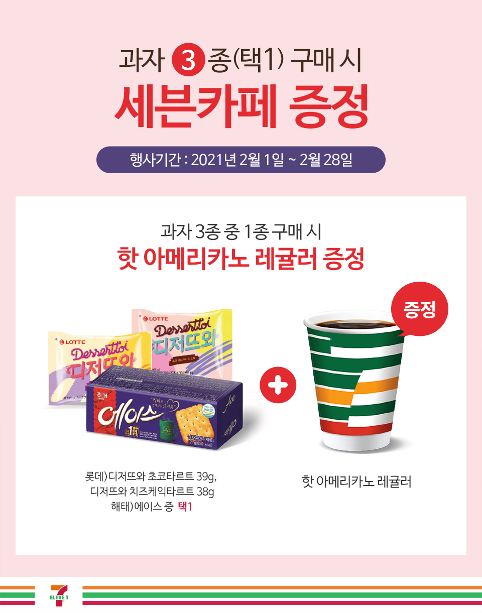 과자 3종 중 1종 구매 시 세븐카페 증정