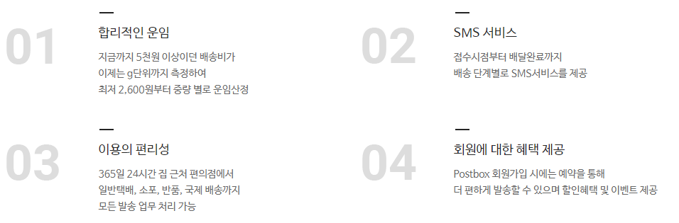 Postbox 국내 택배서비스 이용운임