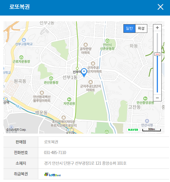 ✔경기 안산시 단원구 선부광장1로 121 중앙슈퍼 101호(로또복권)