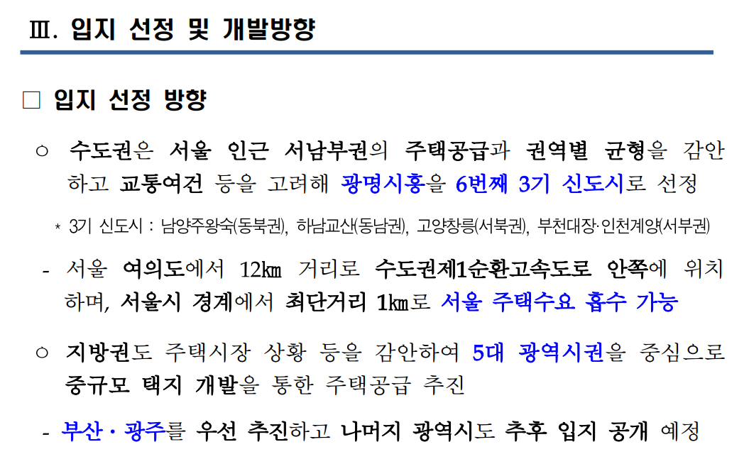 정부가 이번에 새로 지정한 광명시흥 지구는