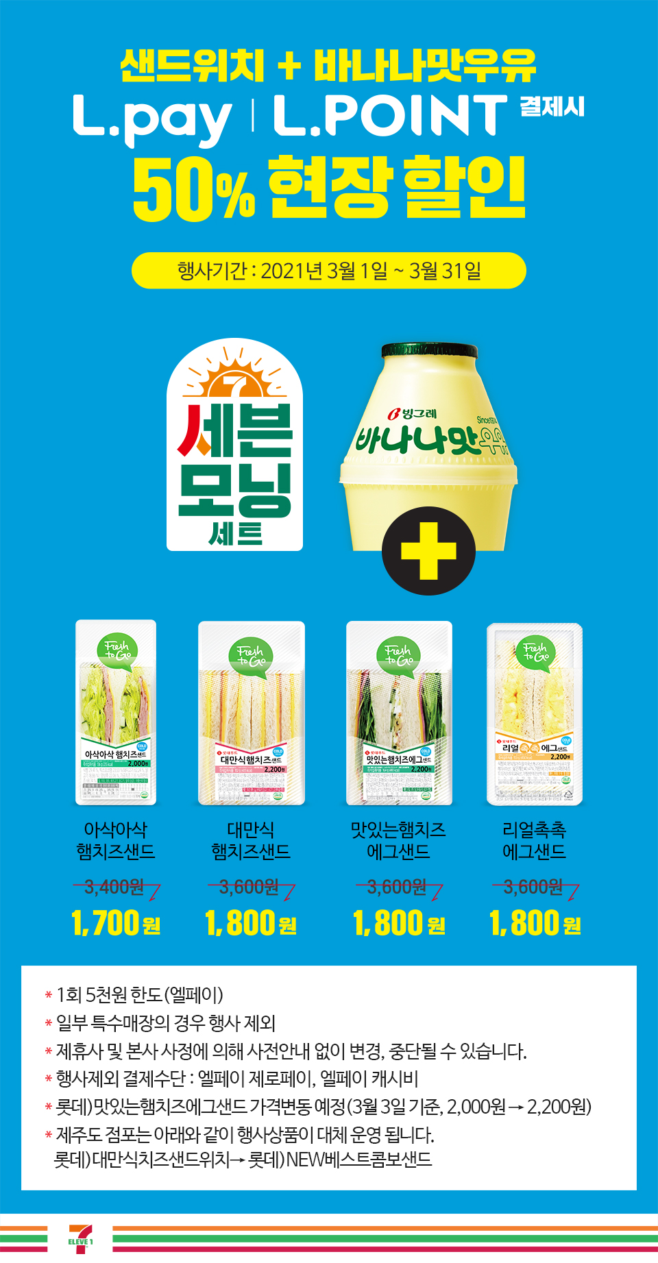 샌드위치 바나나우유 L.pay L.POINT 결제시 50% 현장할인