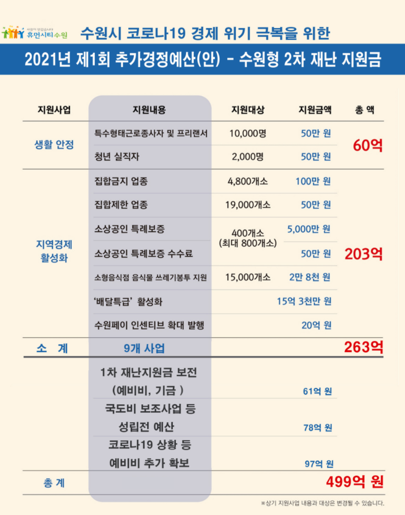 집중 지원하는 2차 수원형 긴급 재난지원 예정입니다.
