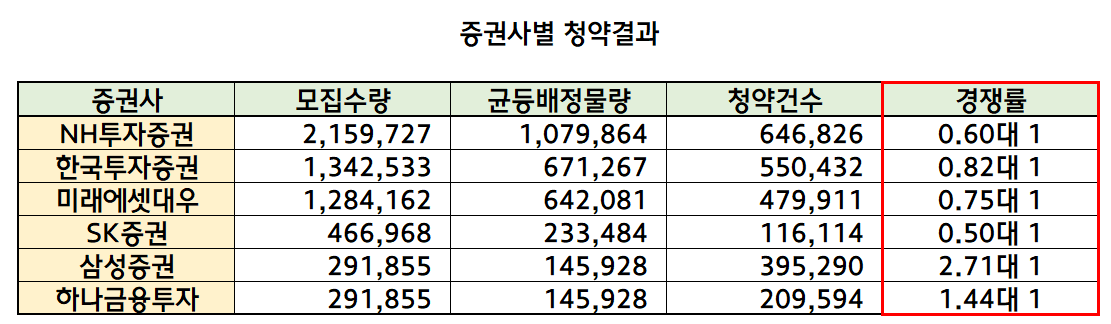 균등배정으로 모든 청약자가 무조건 1주를 받습니다.