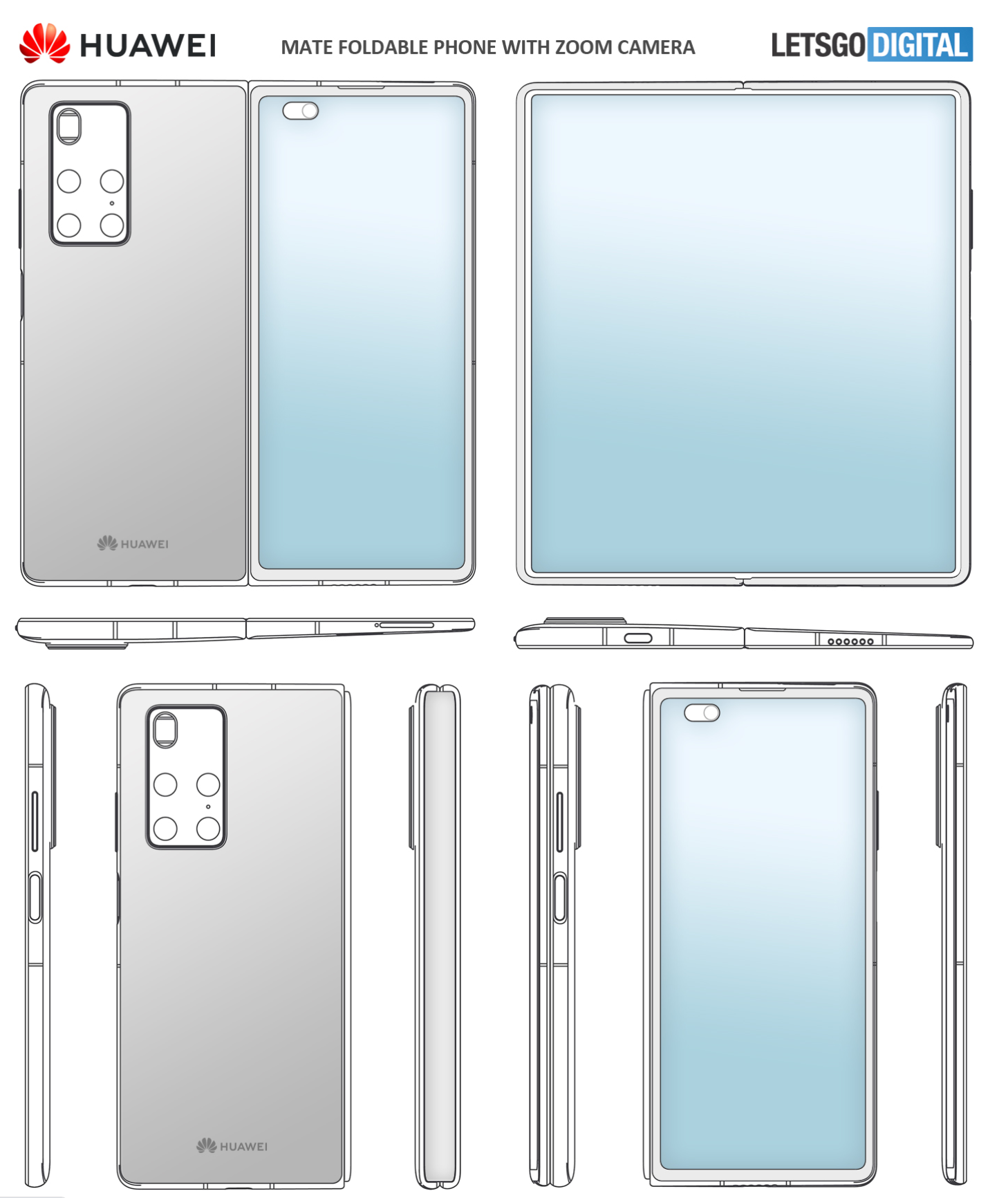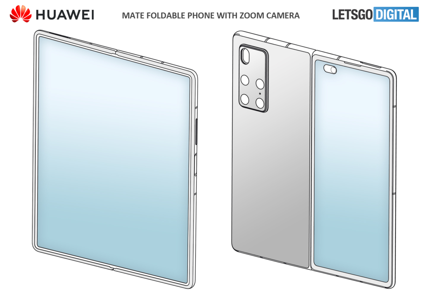 화웨이가 인폴딩 디자인에 카메라와 더블 홀 펀치 전면 카메라