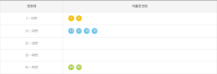 <최근 5주간 미출현 번호>