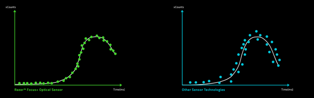 적외선 광선을 이용하여 모든 클릭을 감지하는 마우스의 스위치는 최고 응답 시간인 0.2m 초로 동작합니다. 더 이상 기존의 물리적 접촉이 필요하지 않기 때문에 이러한 형태의 작동은 디 바운스 지연의 필요성을 제거하고 의도하지 않은 클릭을 트리거하지 않으므로, 더 정밀한 제어와 완벽한 반응이 가능합니다.