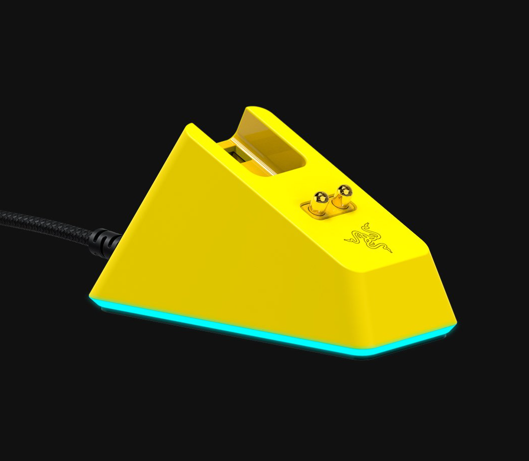 다음 달 출시 예정인 '사이버펑크 2077' 게임 컬러에 맞춰 마우스 본체와 충전 거치대 모두 옐로우 톤으로 적용하여