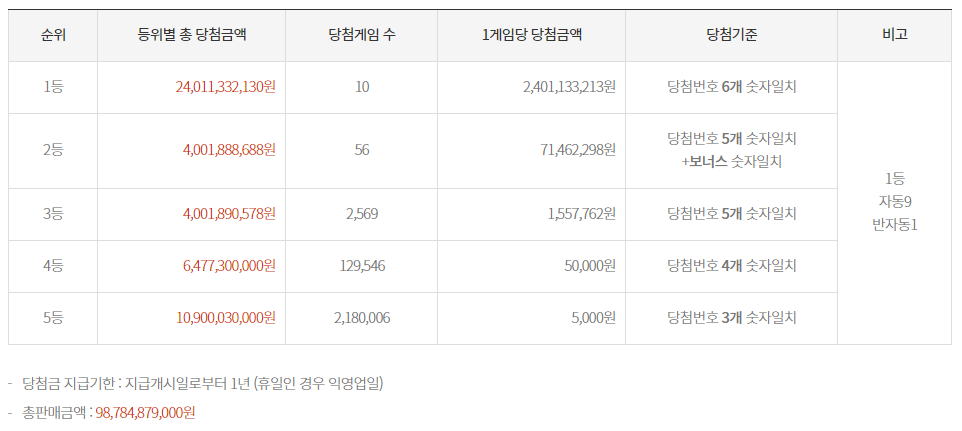 - 지급기한일 초과 시 당첨자가 미수령한 당첨금액은 복권기금으로 귀속됩니다.