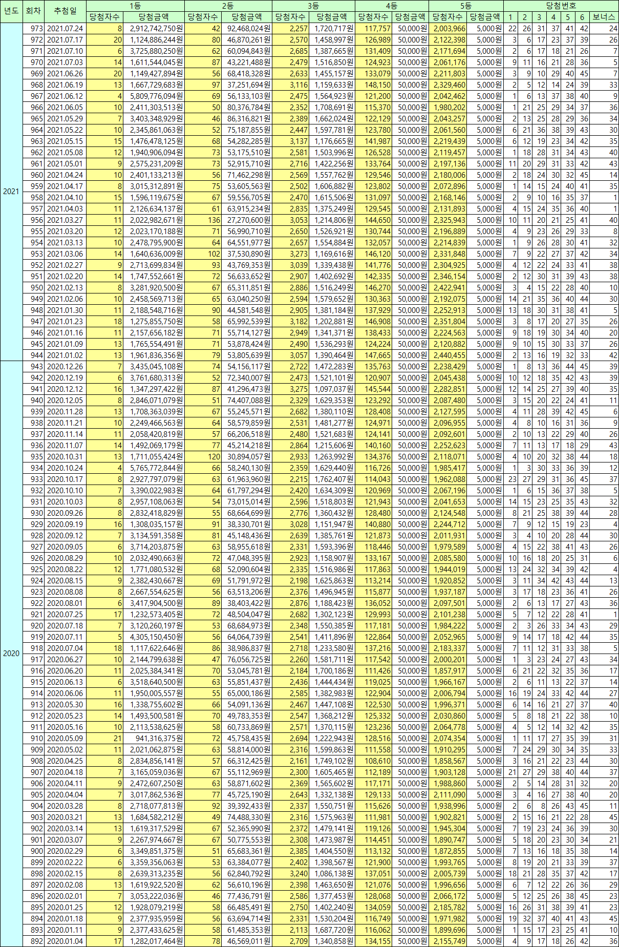 로또 1회~973회까지