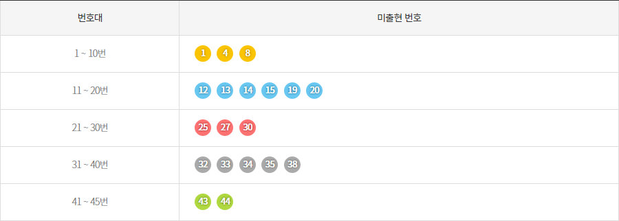 기간별 미출현 번호