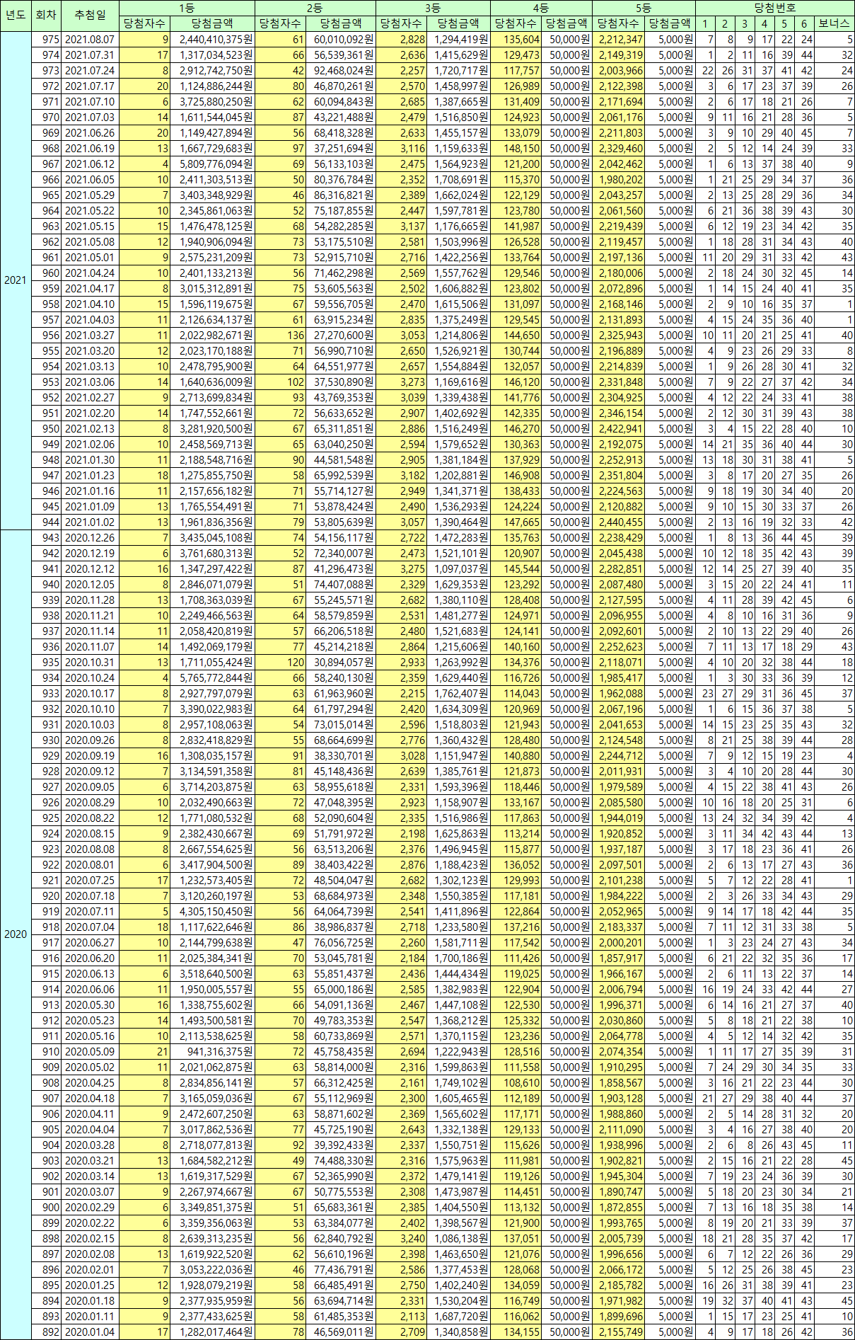 로또 회차별 당첨번호 및 당첨금액에 대해