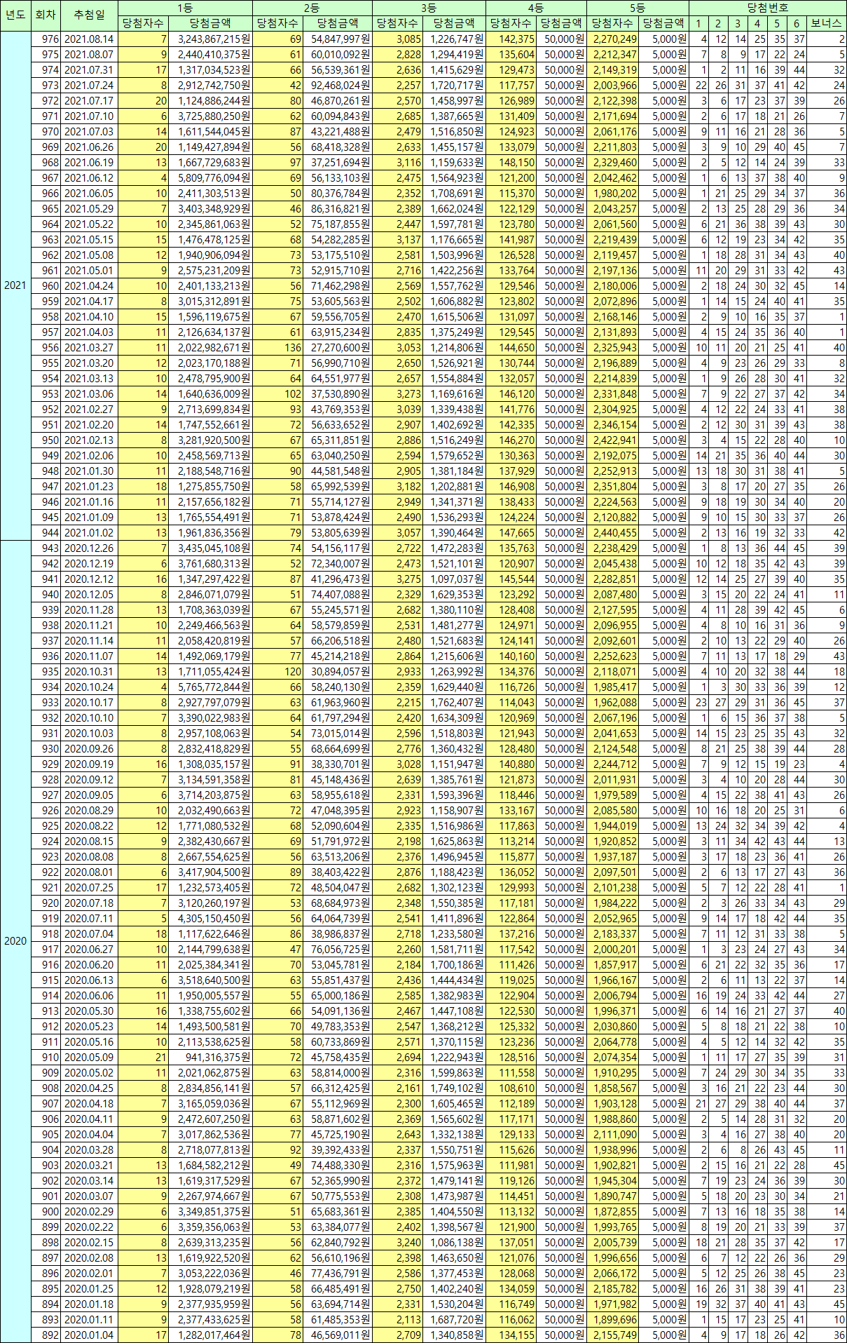 로또 회차별 당첨번호 및 당첨금액에 대해