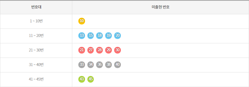 <최근 10주간 미출현 번호>