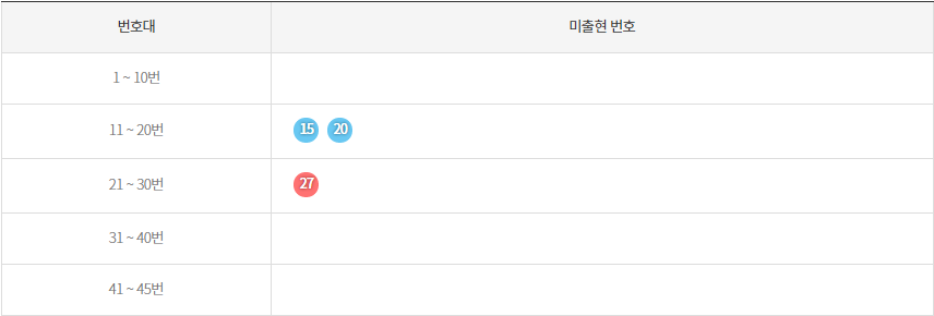 1등부터 5등까지의 당첨자수, 당첨금액, 당첨번호 통계입니다.