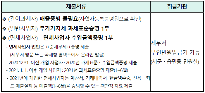 - 사업체를 공동대표로 운영하는 경우 대표자 중 1인만 지급, 나머지 공동대표자의 위임장 필요