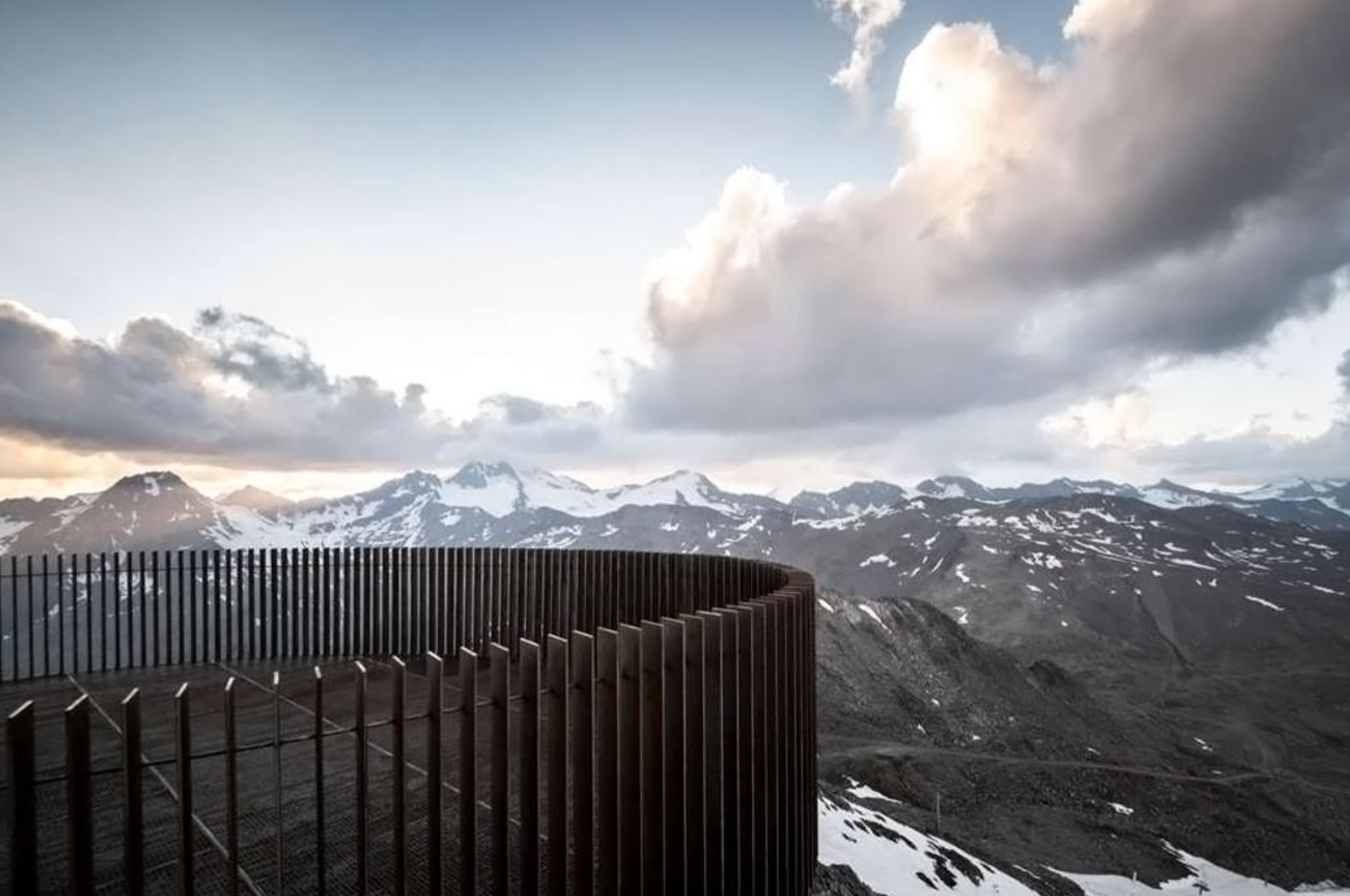 이탈리아 알프스 상공에 있는 미래 지향적 디자인 전망대