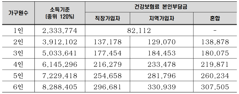 ※ 건강보험상 피부양자로 등록된 배우자와 자녀는 본인과 주민등록을 달리하고 있더라도 본인의 배우자나 자녀는 가구원에 포함
