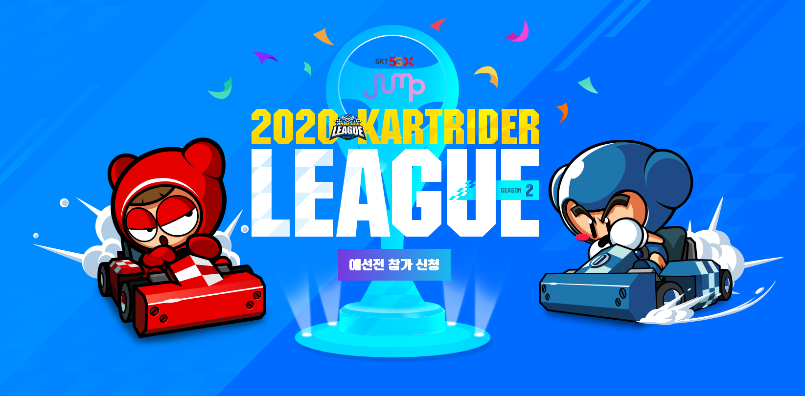 넥슨은 온라인 레이싱게임 ‘카트라이더’의 29번째 정규 e스포츠 대회 ‘2020 SKT 5GX JUMP 카트라이더 리그 시즌2’ 결승전을 8일 개최합니다.