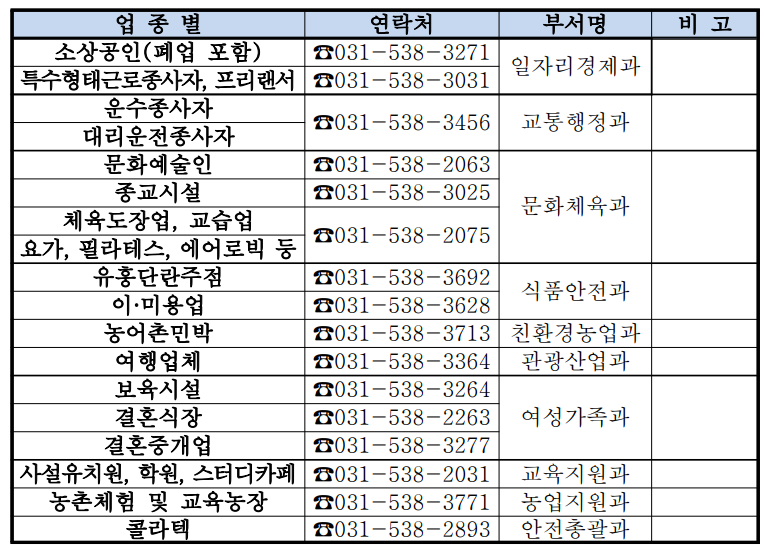- 기타 자세한 사항은 포천시청 홈페이지 또는 업종별 담당부서 문의