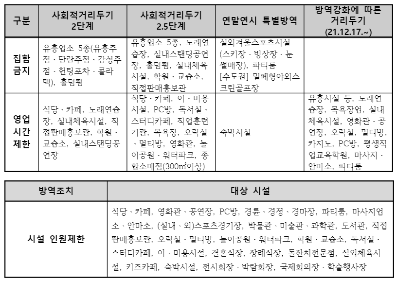집합금지 또는 영업시간제한, 시설인원제한 업종 관할부서 방문신청